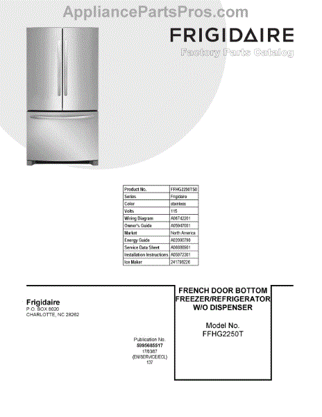 Parts for Frigidaire FFHG2250TS0: 01 - Cover Sheet Parts