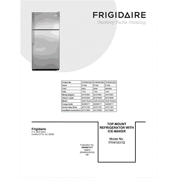 Parts for Frigidaire FFHI1831QE2: 01 - Cover Sheet Parts
