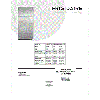 Parts for Frigidaire FFHI1831QP0: 01 - Cover Sheet Parts