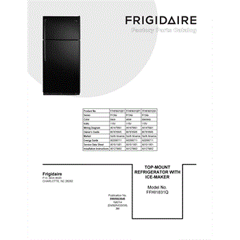 Parts for Frigidaire FFHI1831QP1: 01 - Cover Sheet Parts