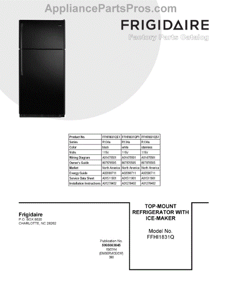 Parts for Frigidaire FFHI1831QS1: 01 - Cover Sheet Parts