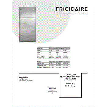 Parts for Frigidaire FFHI1831QS3: 01 - Cover Sheet Parts
