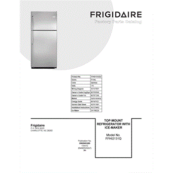 Parts for Frigidaire FFHI2131QS2: 01 - Cover Sheet Parts