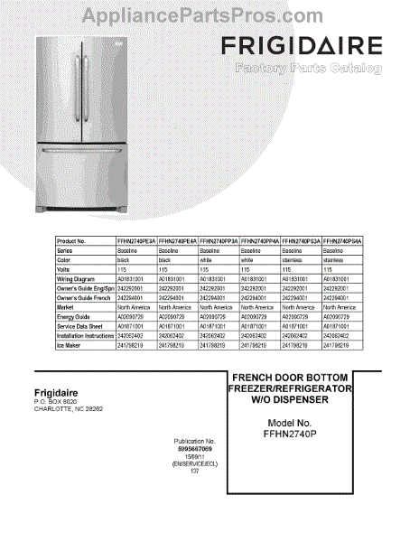 Parts for Frigidaire FFHN2740PE3A: 01 - Cover Sheet Parts