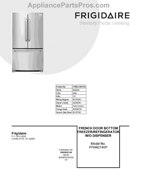 Parts for Frigidaire FFHN2740PP2A: 01 - Cover Sheet Parts