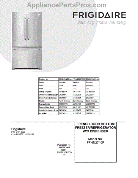 Parts for Frigidaire FFHN2740PP5A: 01 - Cover Sheet Parts
