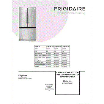 Parts for Frigidaire FFHN2740PP6A: 01 - Cover Sheet Parts