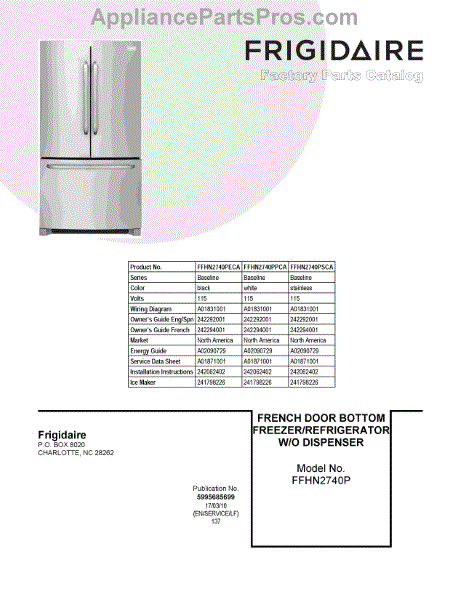 Parts for Frigidaire FFHN2740PSCA: 01 - Cover Sheet Parts