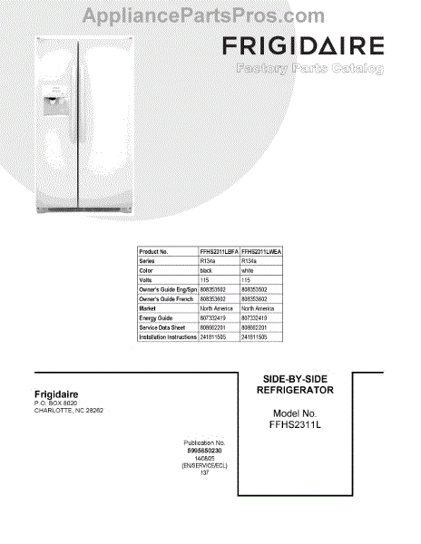 Parts for Frigidaire FFHS2311LBFA: 01 - Cover Sheet Parts