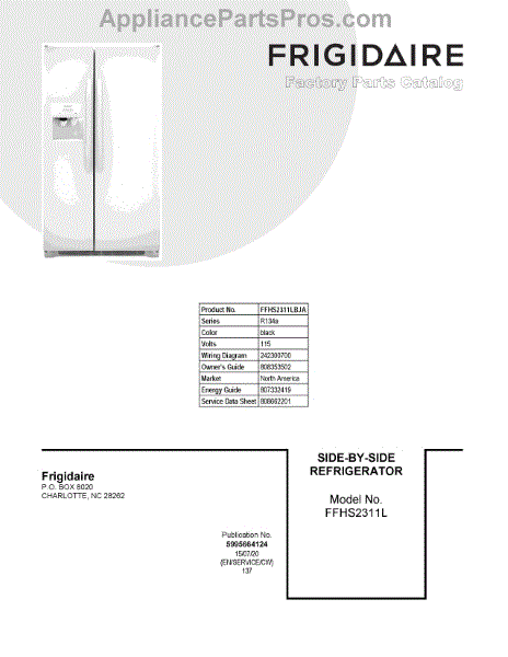 Parts for Frigidaire FFHS2311LBJA: 01 - Cover Sheet Parts