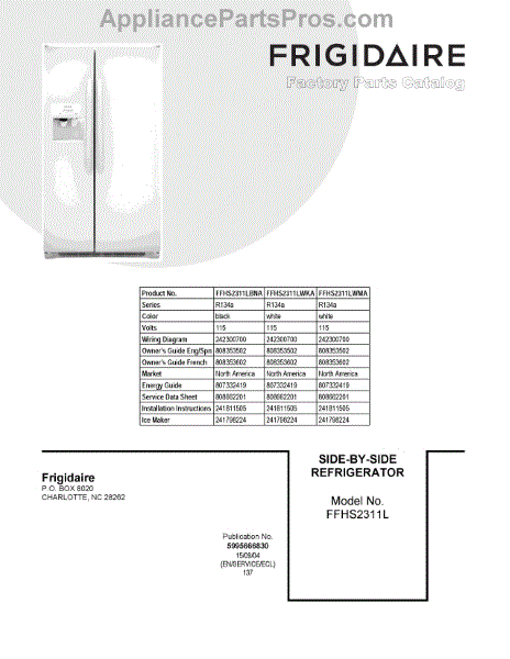 Parts for Frigidaire FFHS2311LBNA: 01 - Cover Sheet Parts