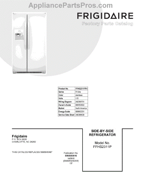 Parts for Frigidaire FFHS2311PF4: 01 - Cover Sheet Parts