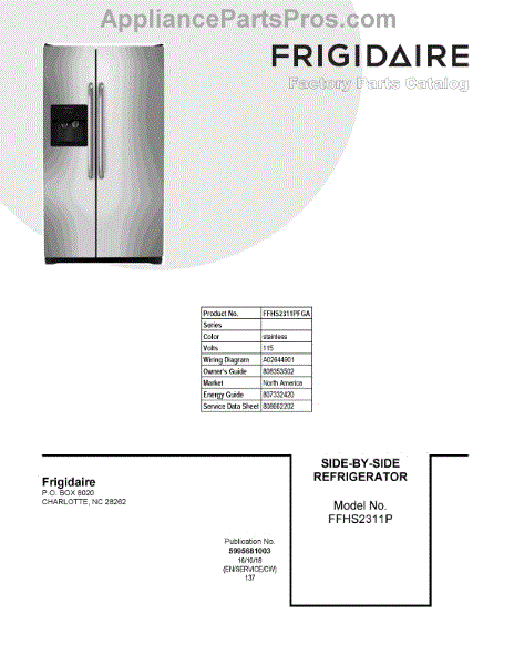Parts for Frigidaire FFHS2311PFGA: 01 - Cover Sheet Parts
