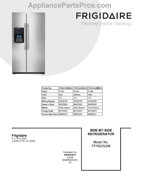 Parts for Frigidaire FFHS2322MBGA: 01 - Cover Sheet Parts
