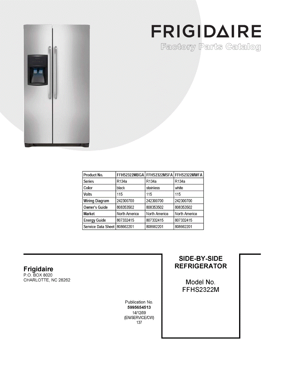 Parts for Frigidaire FFHS2322MSFA: 01 - Cover Sheet Parts