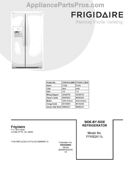 Parts for Frigidaire FFHS2611LBMA: 01 - Cover Sheet Parts
