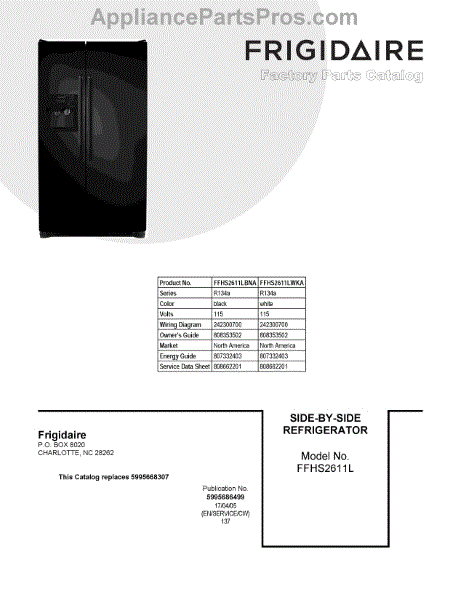 Parts for Frigidaire FFHS2611LBNA: 01 - Cover Sheet Parts