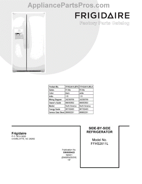 Parts for Frigidaire FFHS2611LWLA: 01 - Cover Sheet Parts