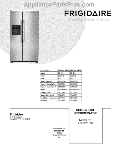 Parts for Frigidaire FFHS2611PFDA: 01 - Cover Sheet Parts