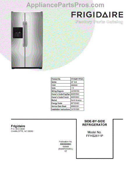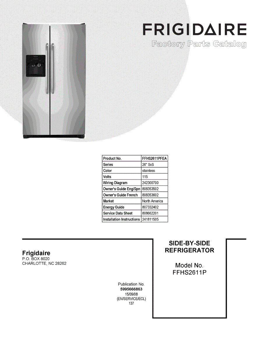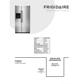 Parts for Frigidaire FFHS2611PFEA: 01 - Cover Sheet Parts