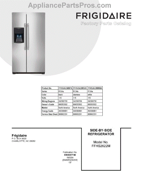 Parts for Frigidaire FFHS2622MSXA: 01 - Cover Sheet Parts