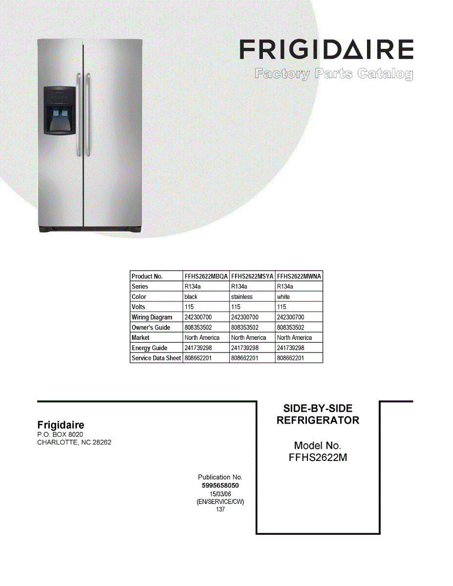 Parts for Frigidaire FFHS2622MSYA: 01 - Cover Sheet Parts
