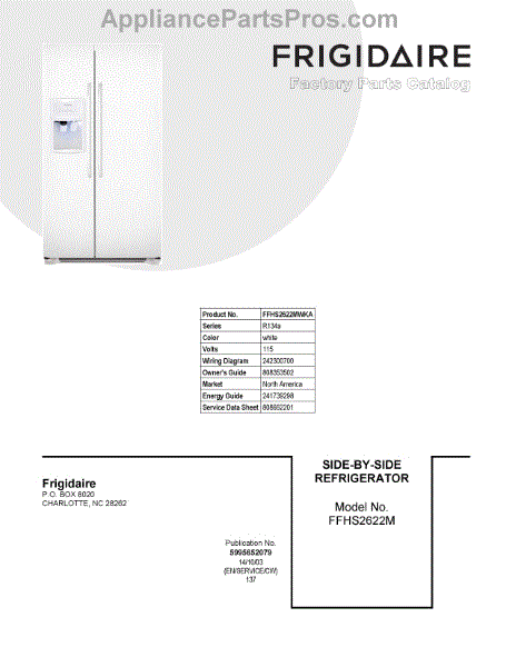 Parts for Frigidaire FFHS2622MWKA: 01 - Cover Sheet Parts