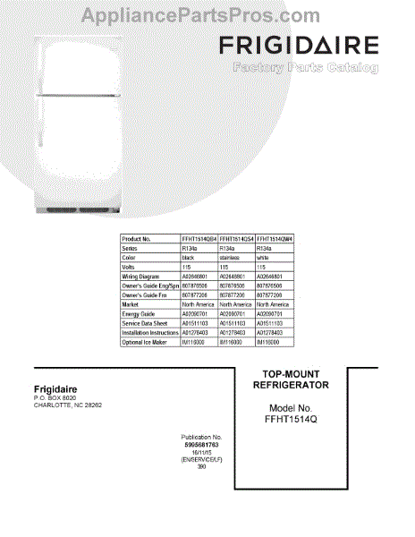 Parts for Frigidaire FFHT1514QB4: 01 - Cover Sheet Parts