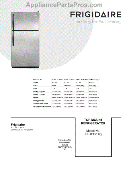 Parts for Frigidaire FFHT1514QZ3: 01 - Cover Sheet Parts