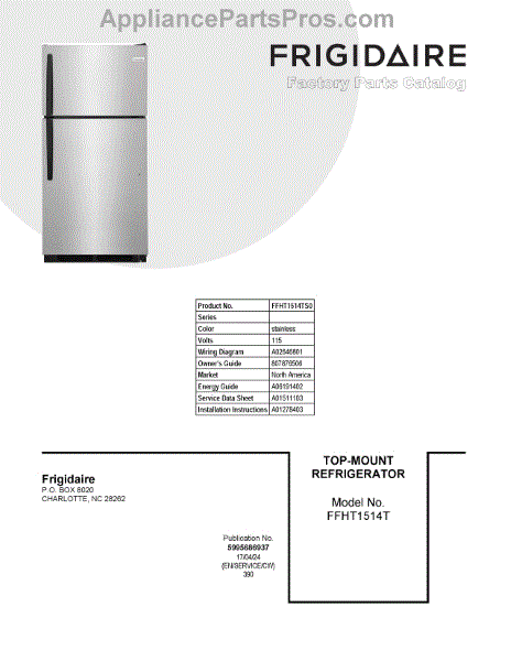 Parts for Frigidaire FFHT1514TS0: 01 - Cover Sheet Parts
