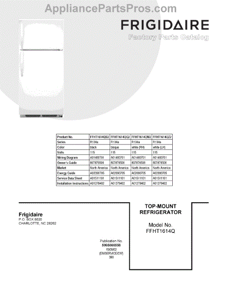 Parts for Frigidaire FFHT1614QQ2: 01 - Cover Sheet Parts