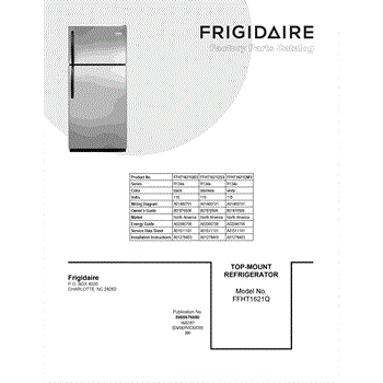Parts for Frigidaire FFHT1621QB3: 01 - Cover Sheet Parts