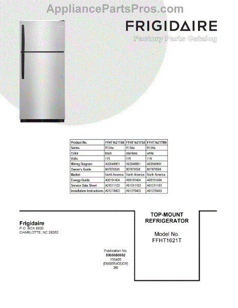 Parts for Frigidaire FFHT1621TS0: 01 - Cover Sheet Parts