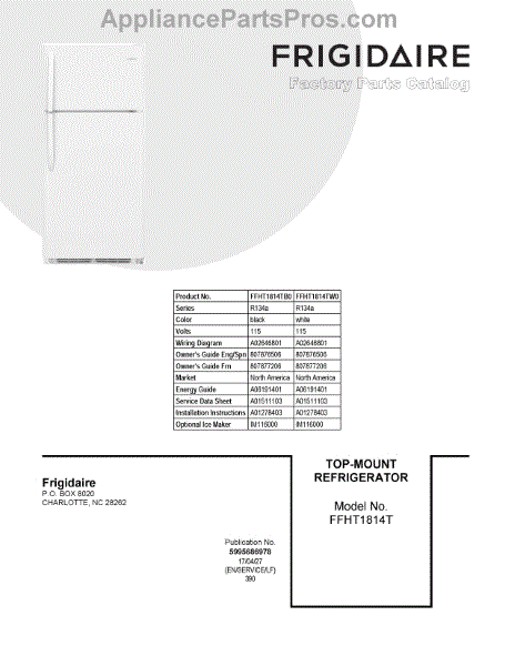 Parts for Frigidaire FFHT1814TB0: 01 - Cover Sheet Parts