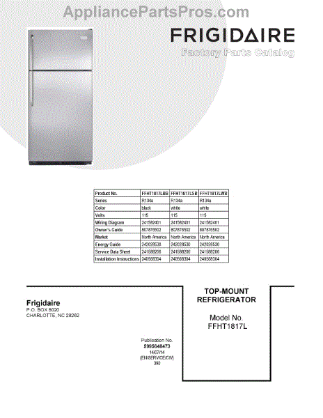 Parts for Frigidaire FFHT1817LWB: 01 - Cover Sheet Parts