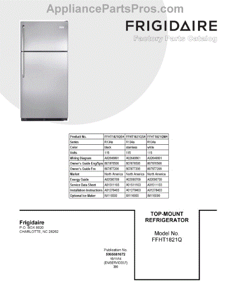 Parts for Frigidaire FFHT1821QS4: 01 - Cover Sheet Parts