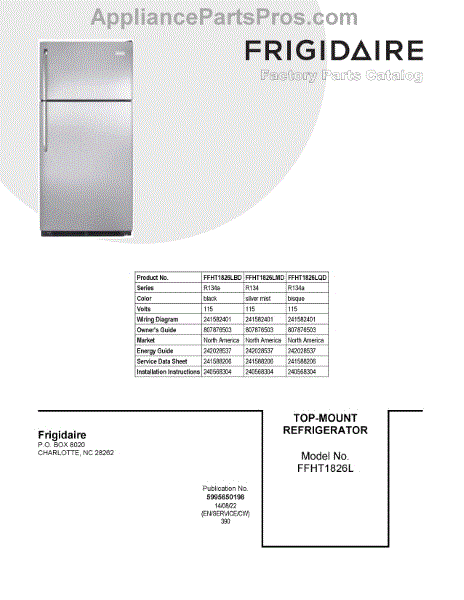 Parts for Frigidaire FFHT1826LQD: 01 - Cover Sheet Parts
