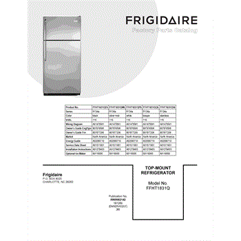 Parts for Frigidaire FFHT1831QP6: 01 - Cover Sheet Parts