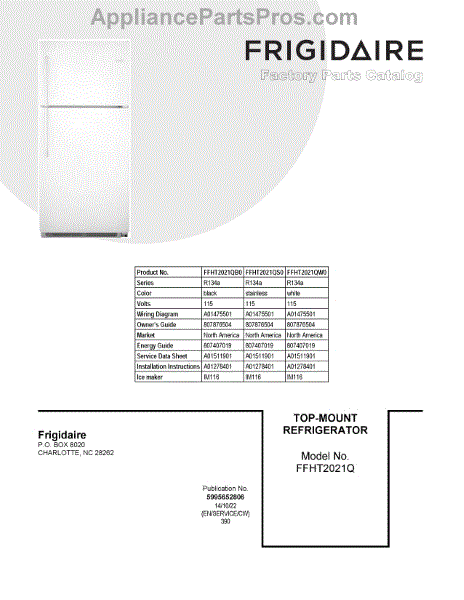 Parts for Frigidaire FFHT2021QW0: 01 - Cover Sheet Parts