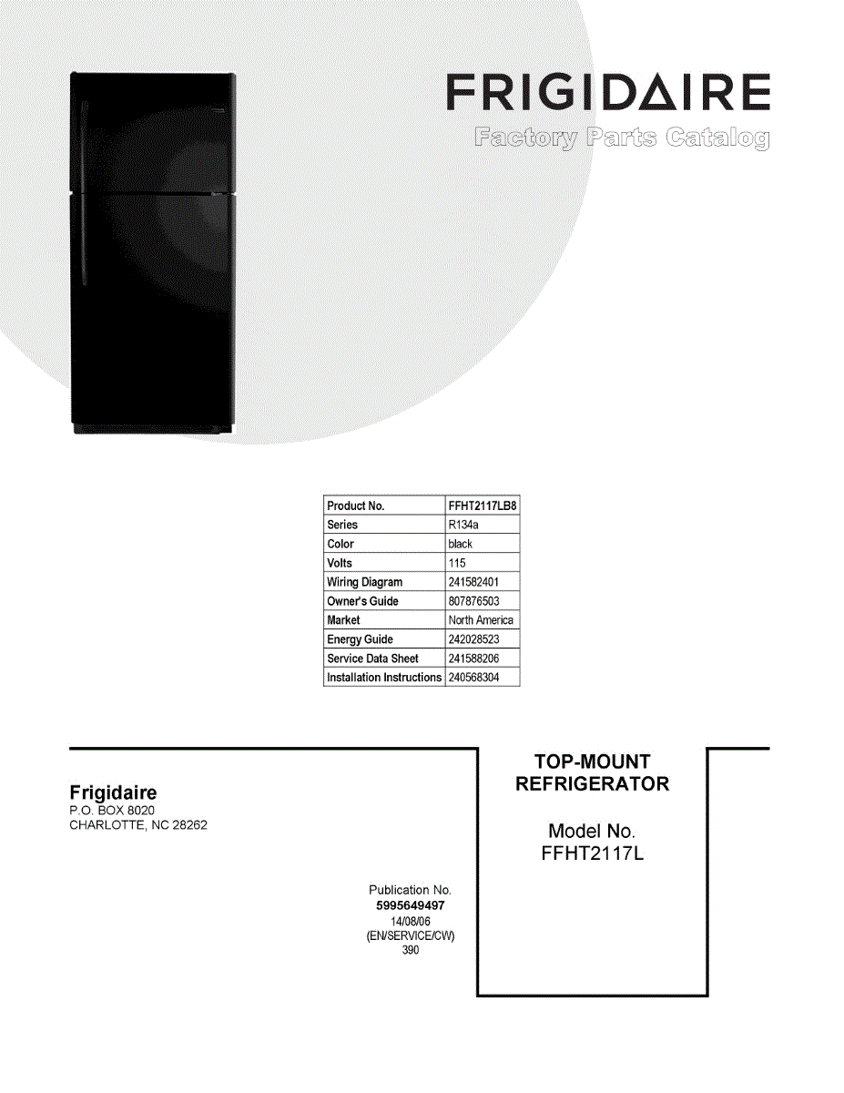 Parts for Frigidaire FFHT2117LB8: 01 - Cover Sheet Parts