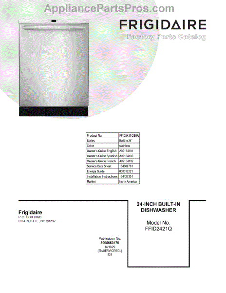 Parts for Frigidaire FFID2421QS0A: 01 - Cover Sheet Parts