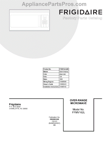 Parts for Frigidaire FFMV162LMB: 01 - Cover Sheet Parts