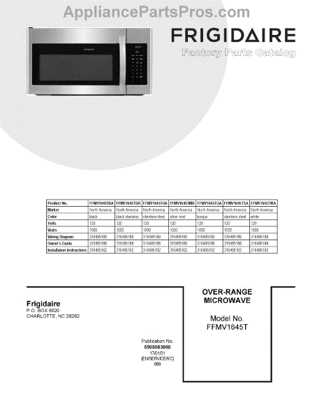 Parts for Frigidaire FFMV1645TQA: 01 - Cover Sheet Parts