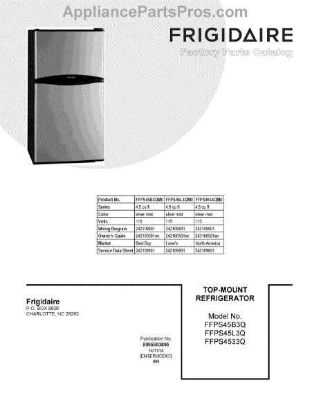Parts for Frigidaire FFPS45B3QM0: 01 - Cover Sheet Parts