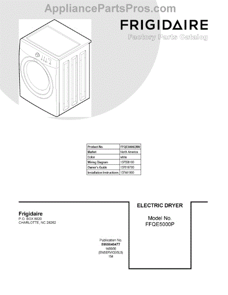 Parts for Frigidaire FFQE5000QW0: 01 - Cover Sheet Parts