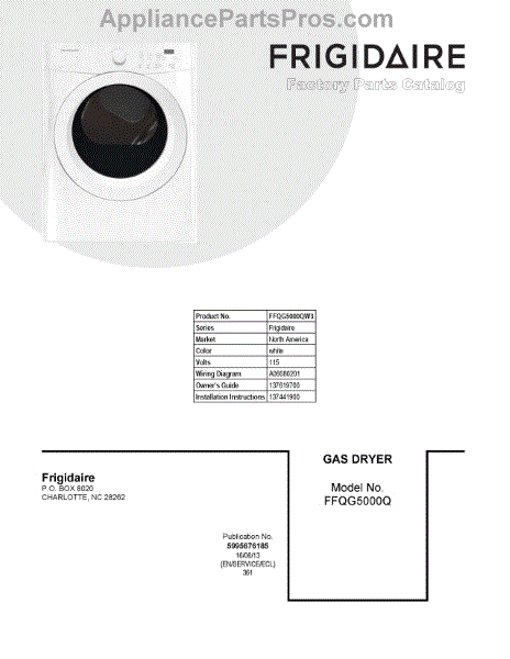 Parts for Frigidaire FFQG5000QW3: 01 - Cover Sheet Parts