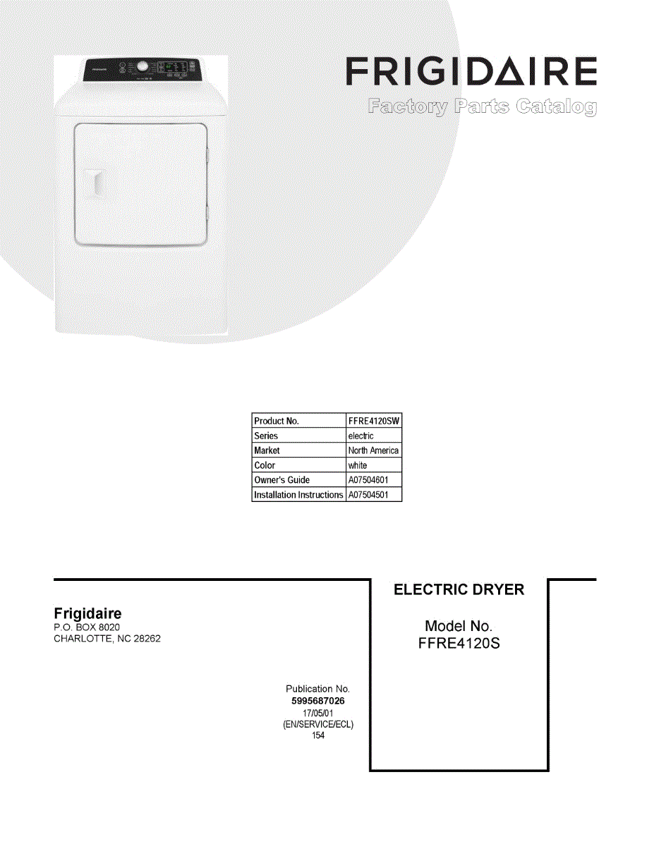 Parts for Frigidaire FFRE4120SW: 01 - Cover Sheet Parts