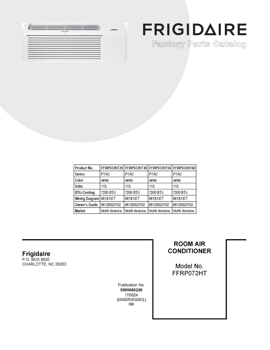 Parts for Frigidaire FFRP072HT60: 01 - Cover Sheet Parts
