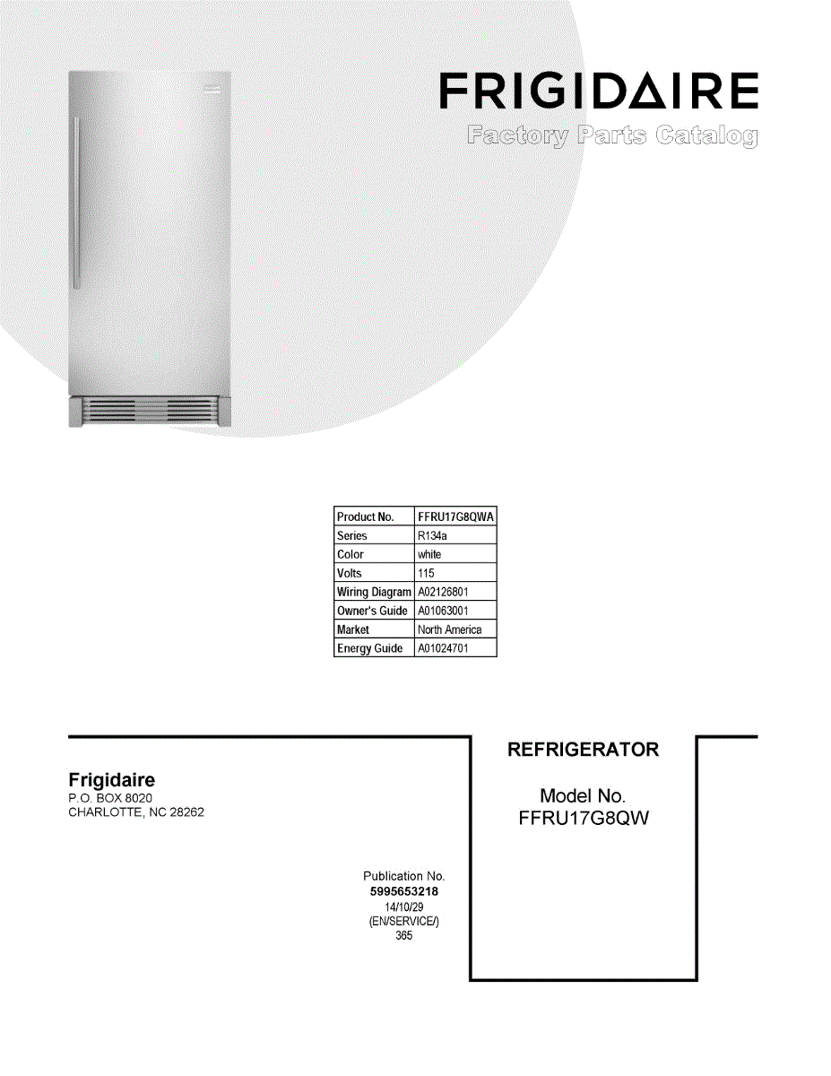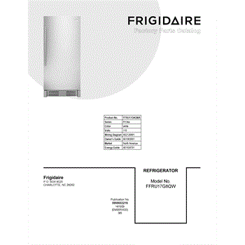 Parts for Frigidaire FFRU17G8QWA: 01 - Cover Sheet Parts
