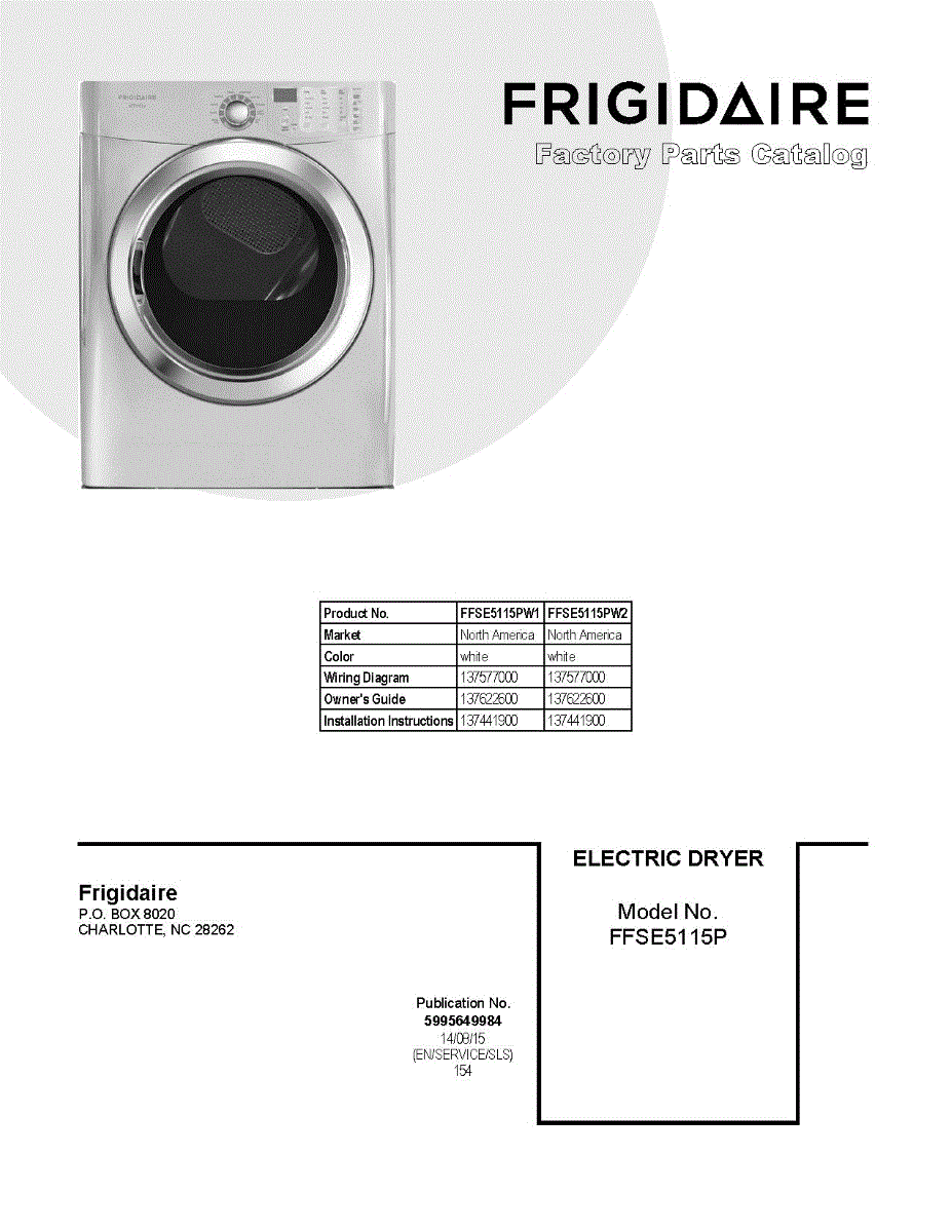 Parts for Frigidaire FFSE5115PW1: 01 - Cover Sheet Parts
